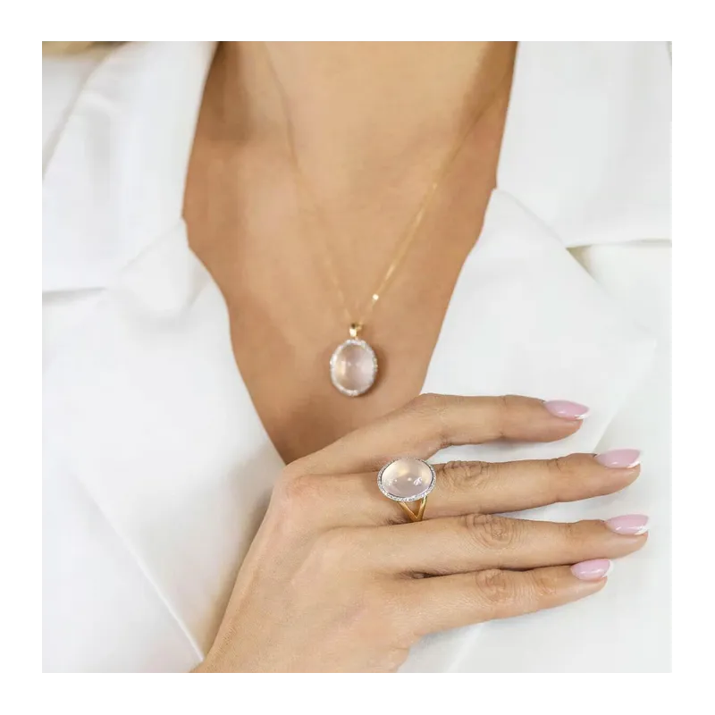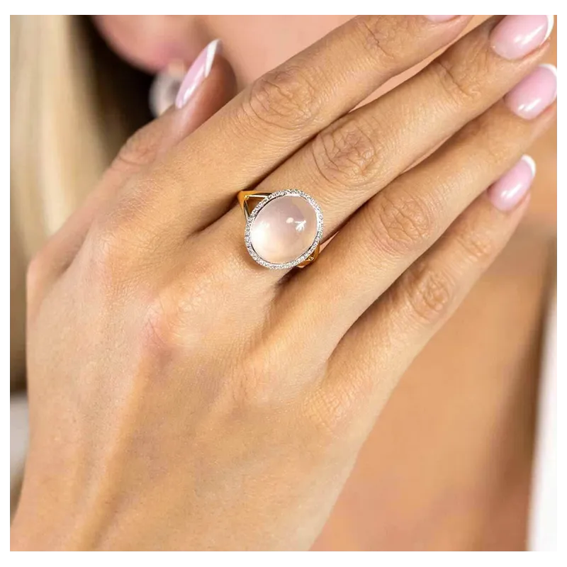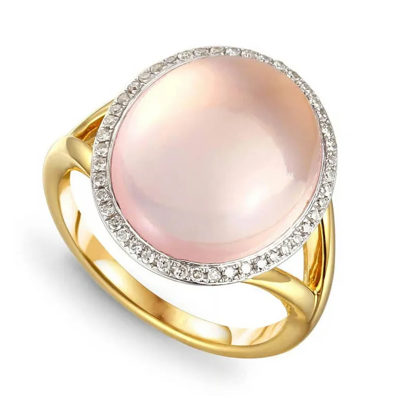 PIERŚCIONEK ZŁOTY Z RÓŻOWYM KWARCEM I DIAMENTAMI