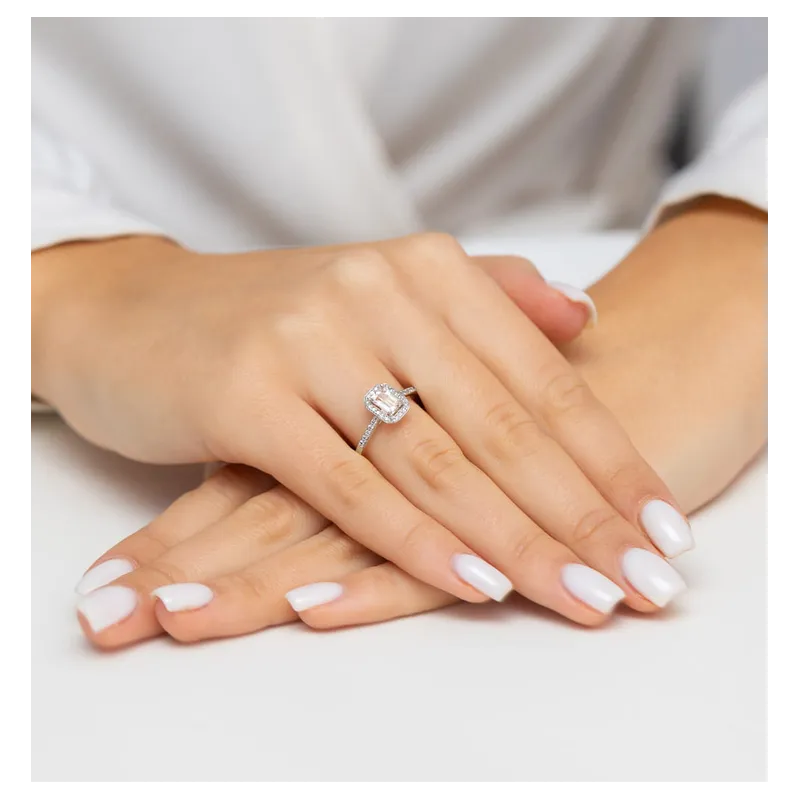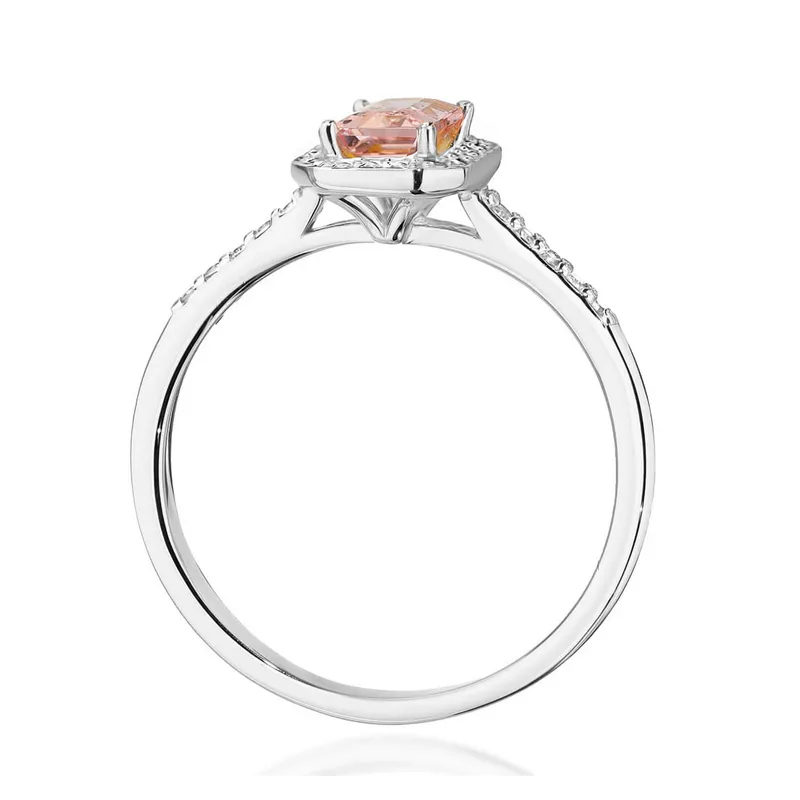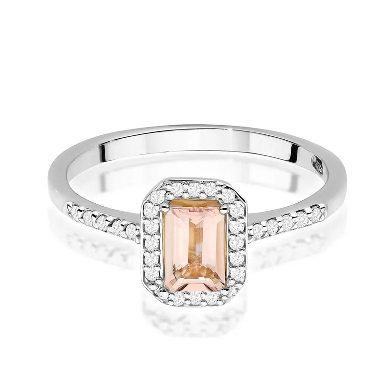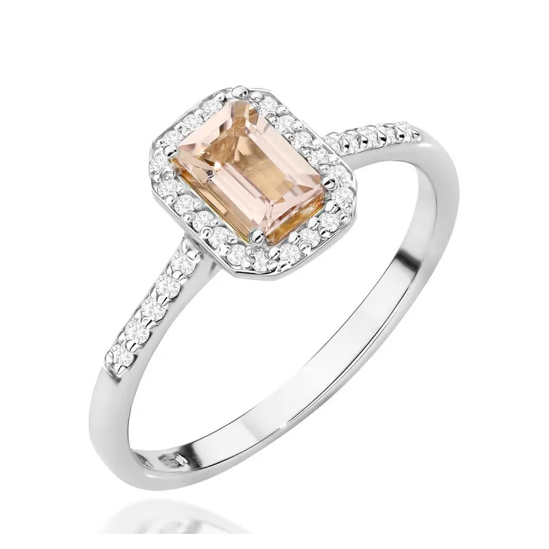 Pierścionek z Morganitem i Diamentami Białe Złoto