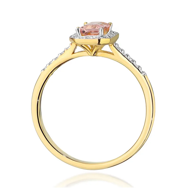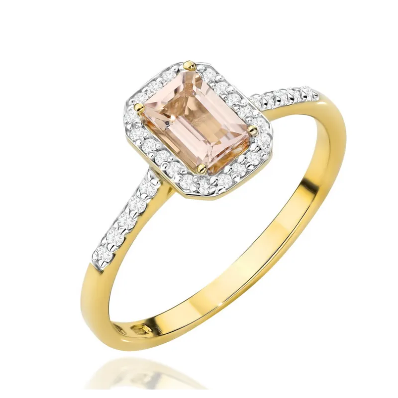 Pierścionek Złoty z Morganitem i Diamentami 585