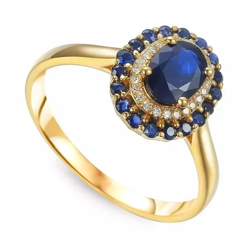 Złoty Pierścionek Szafir Diamenty pr 585 Grawer ( NA ZAMÓWIENIE )