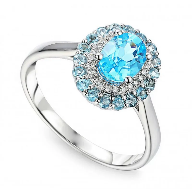 Pierścionek 585 Topaz i Diamenty Białe Złoto ( NA ZAMÓWIENIE )