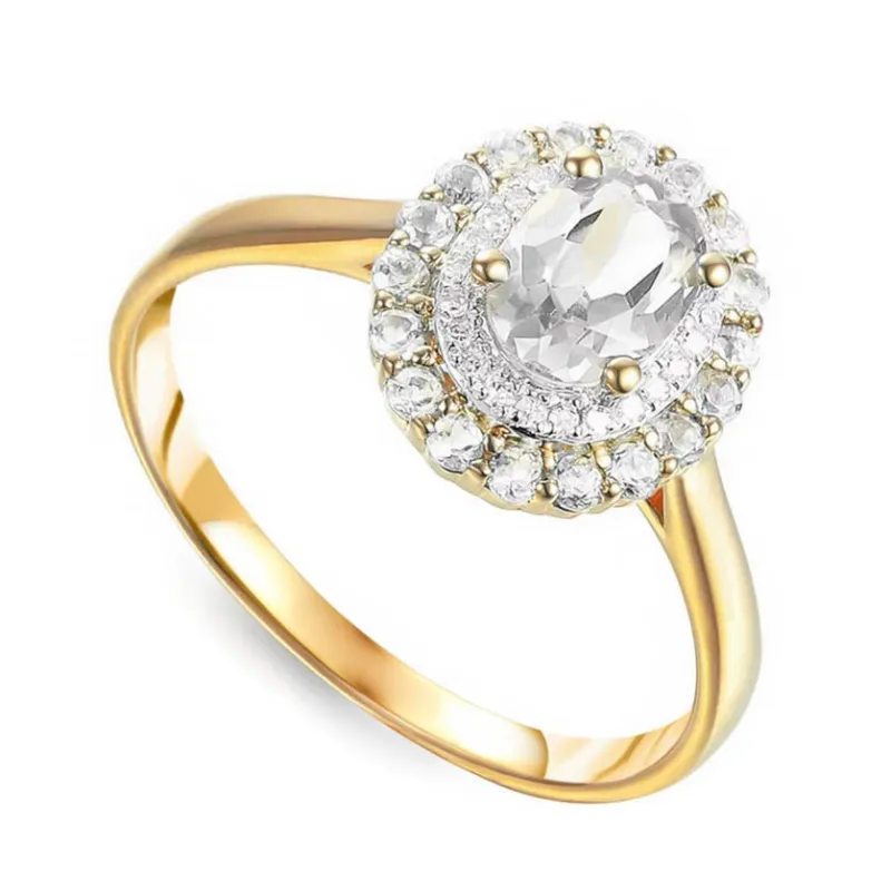 Złoty 585 Pierścionek Biały Topaz Diamenty Grawer ( NA ZAMÓWIENIE )