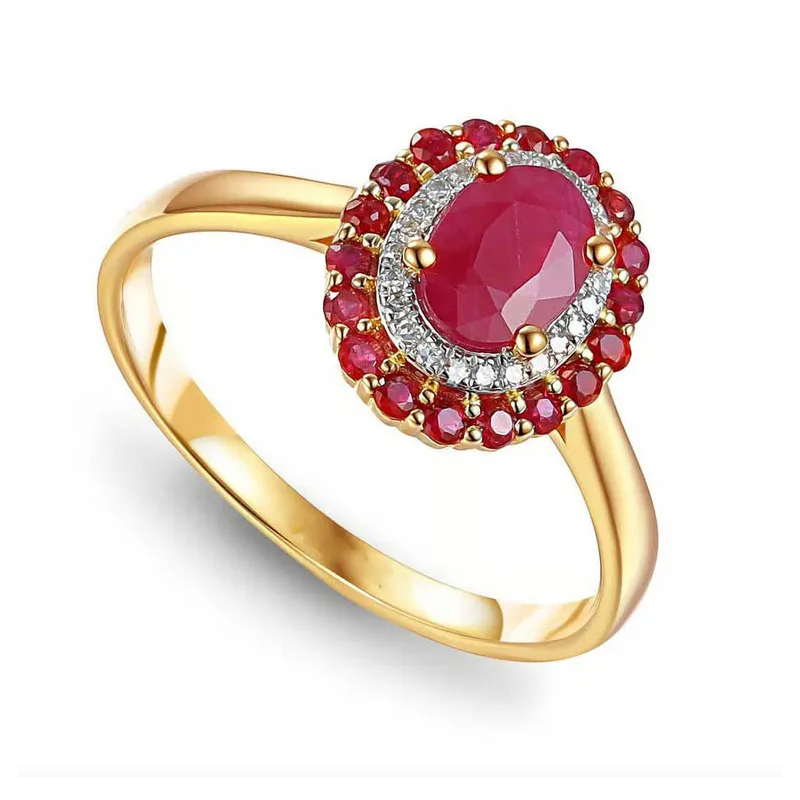 Złoty Pierścionek Rubin i Diamenty 585 Grawer