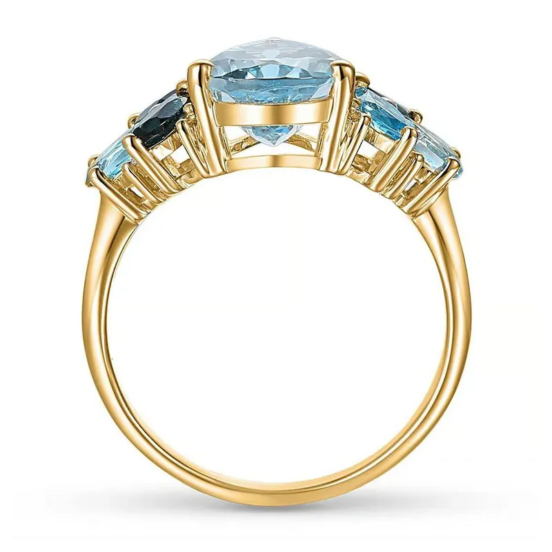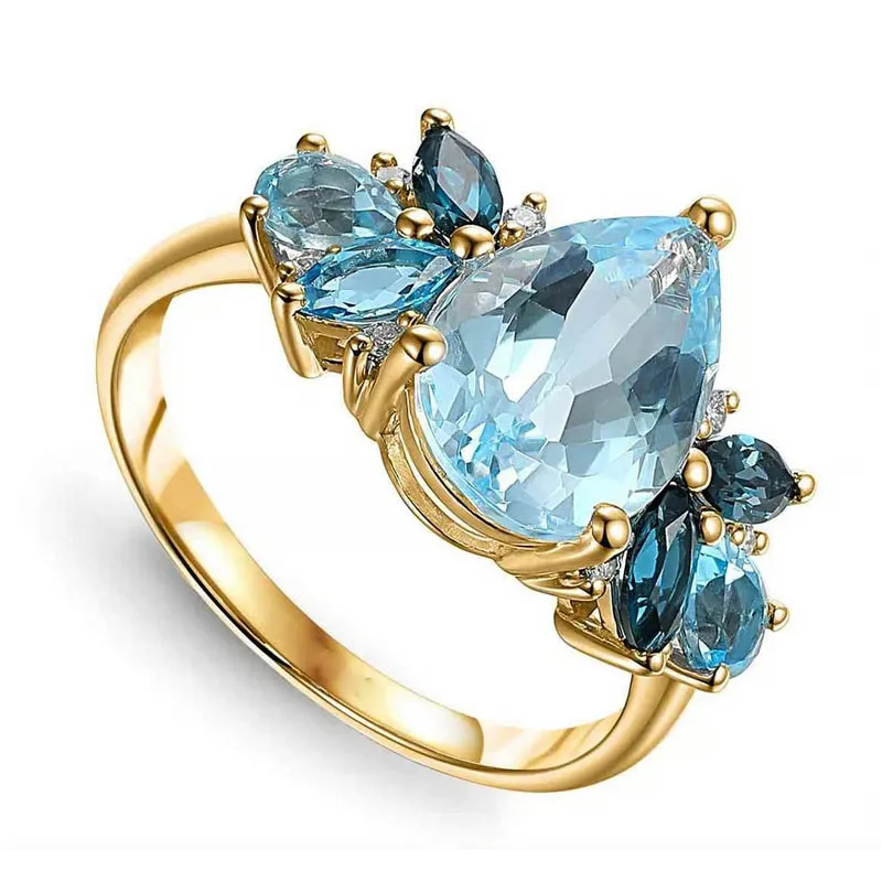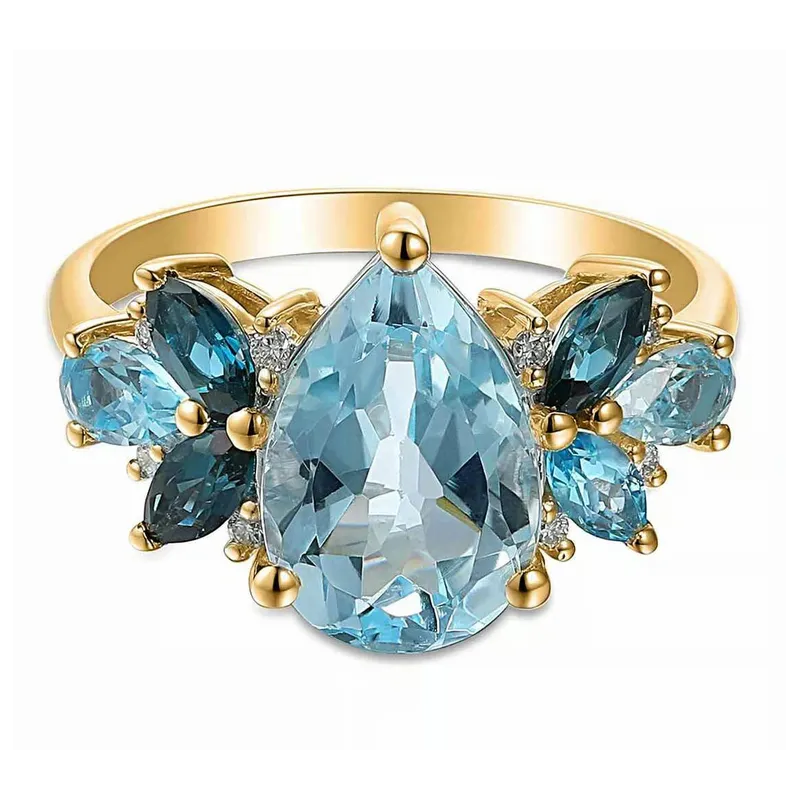 ZŁOTY PIERŚCIONEK 585 Z NIEBIESKIMI TOPAZAMI I DIAMENTAMI