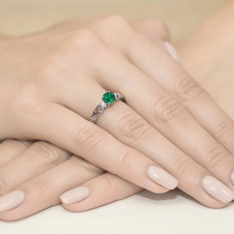 Złoty Pierścionek 585 Szmaragd i Brylanty Piękny