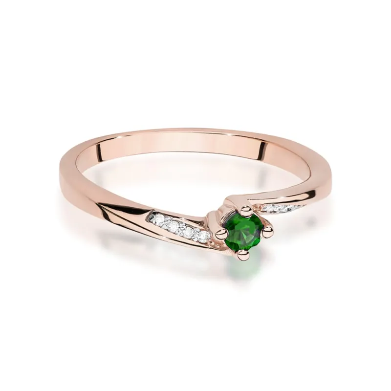 Złoty 585 Pierścionek Szmaragd Brylanty Złoto Białe (na zamówienie)