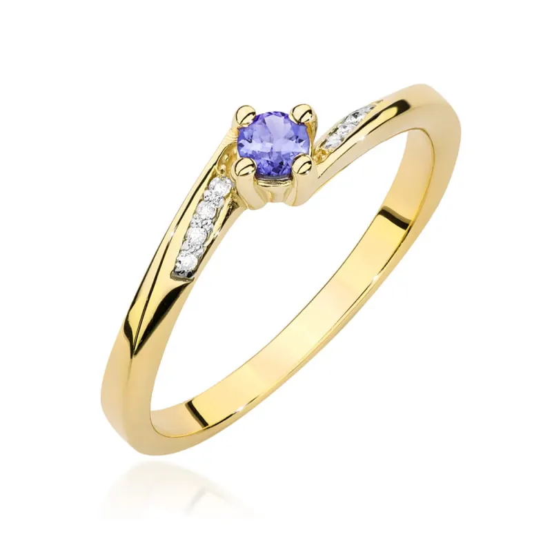 Złoty 585 Pierścionek Tanzanit Brylanty