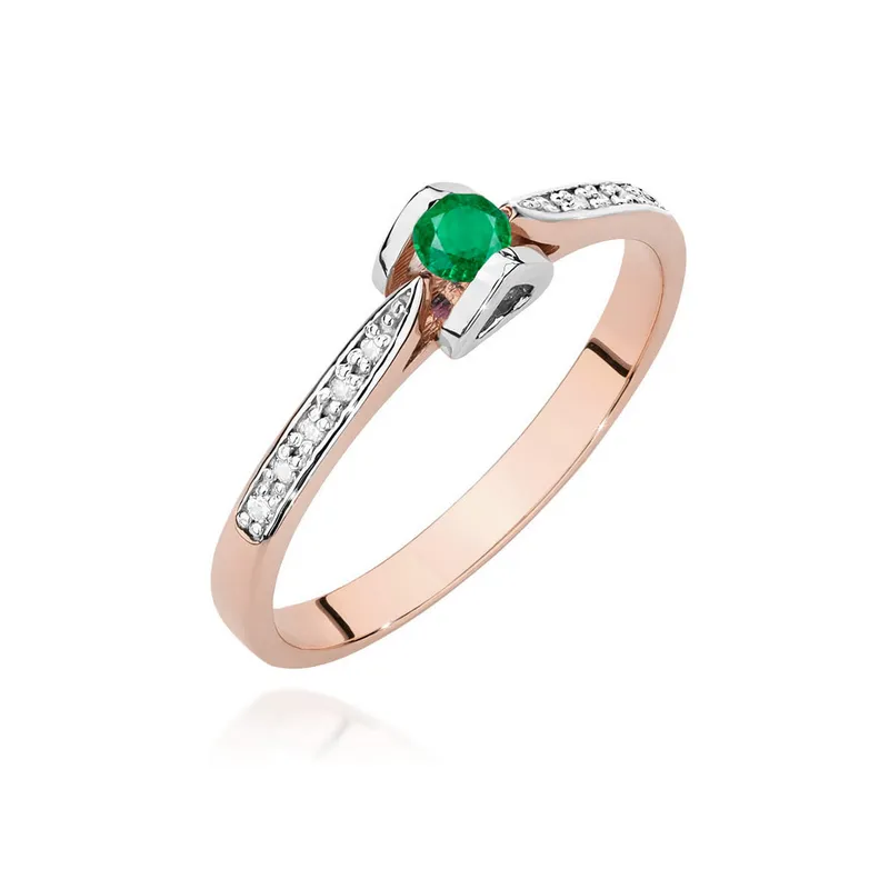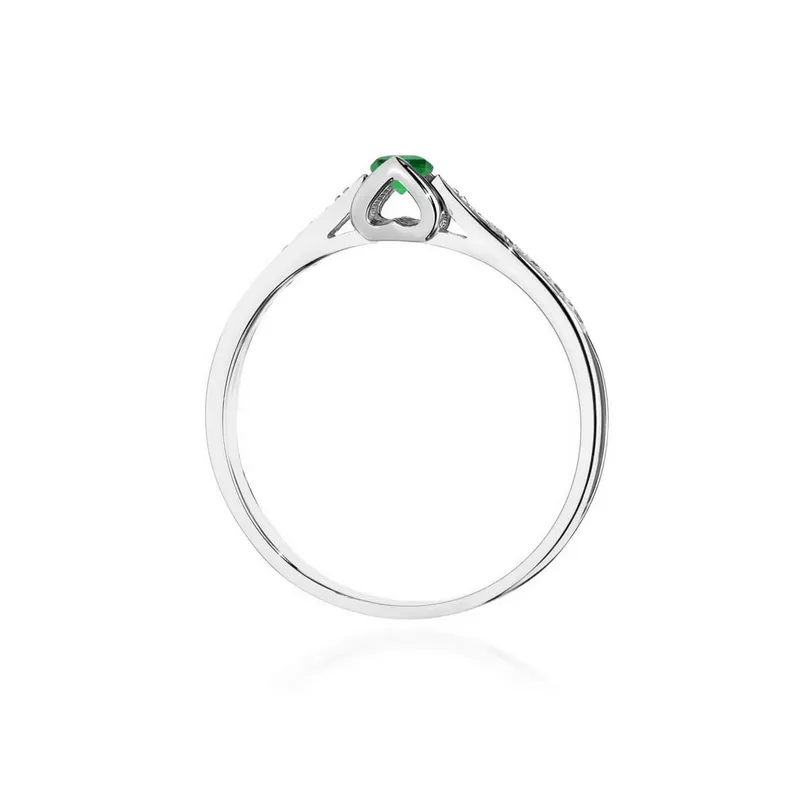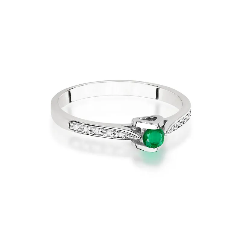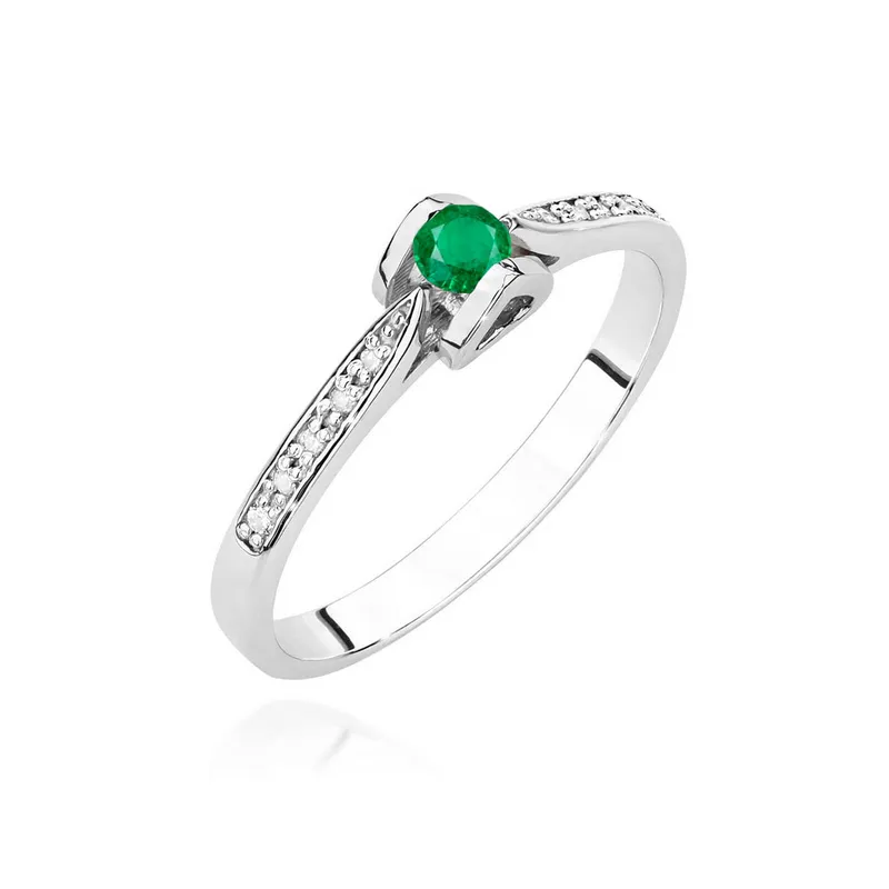 Złoty 585 Pierścionek Szmaragd i Brylanty Złoto Białe