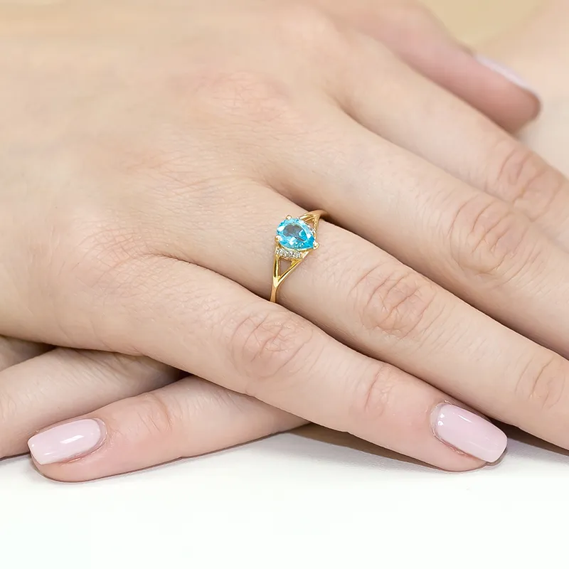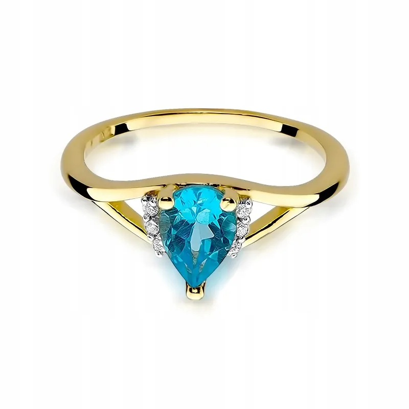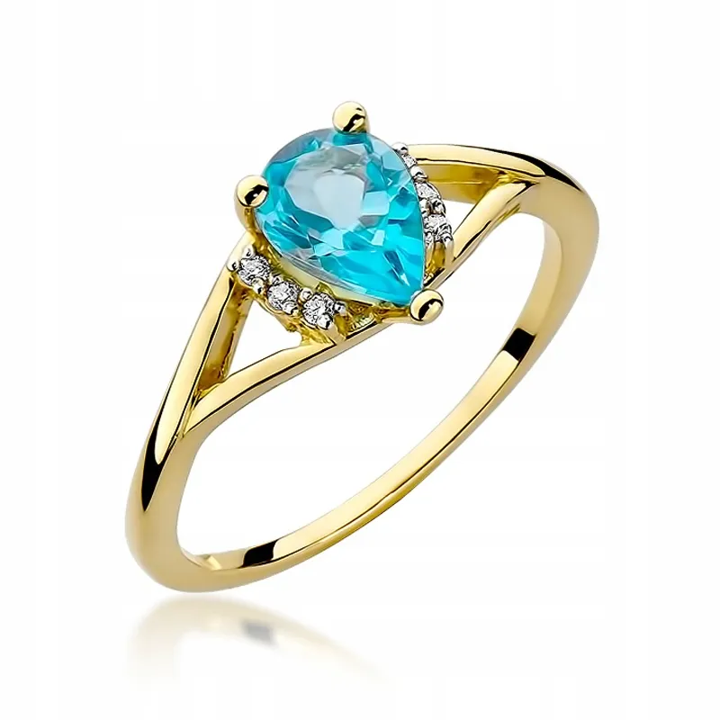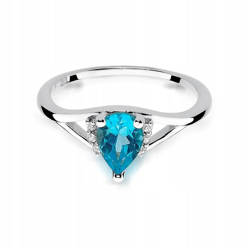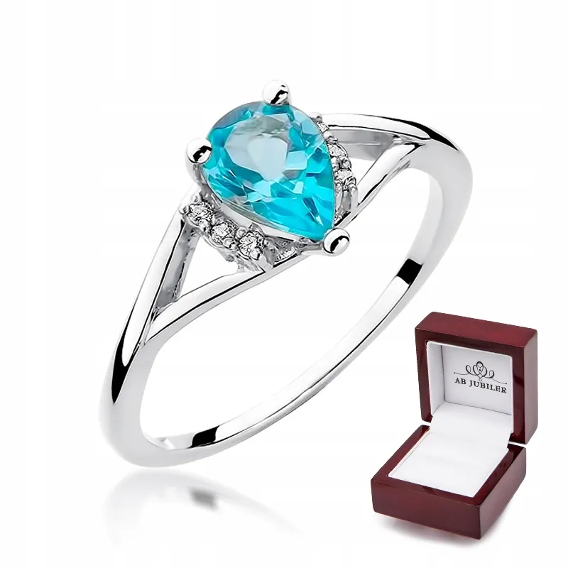Pierścionek Zaręczynowy Białe Złoto Topaz Brylanty