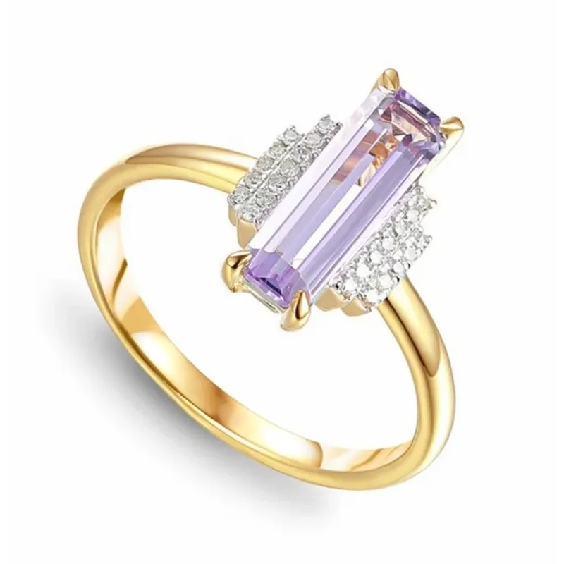 Złoty Pierścionek Różowy Ametyst i Diamenty pr 585