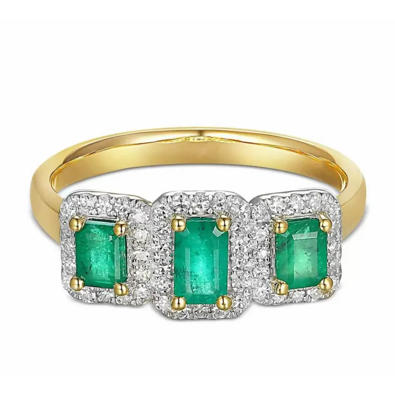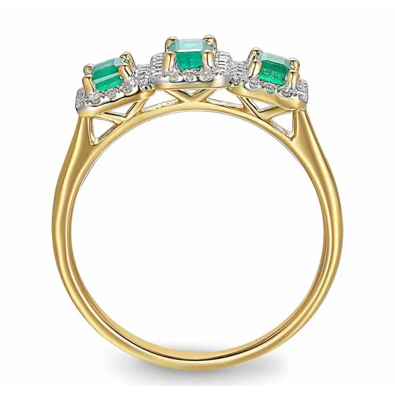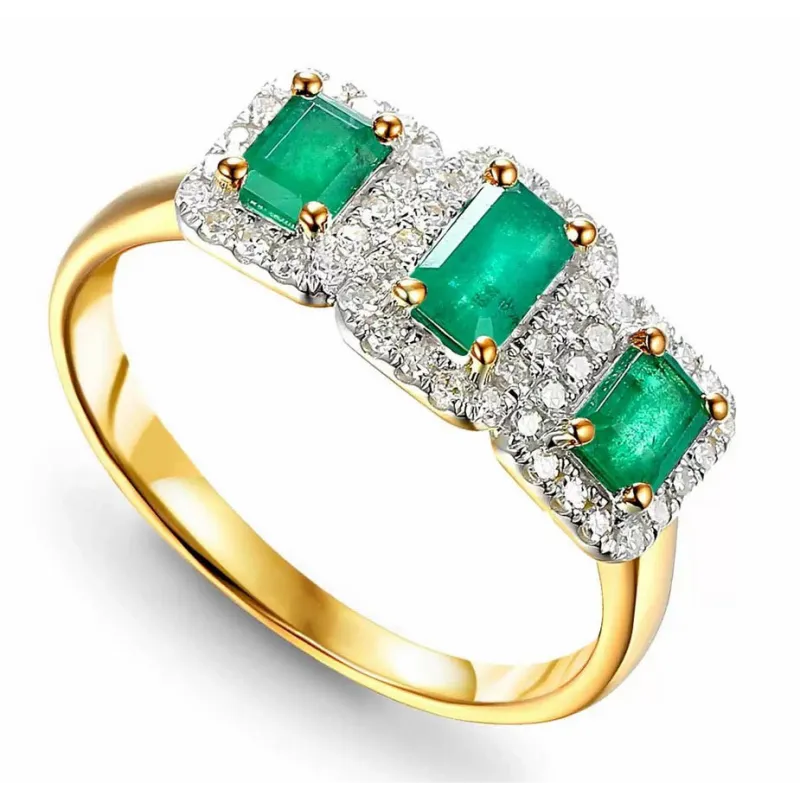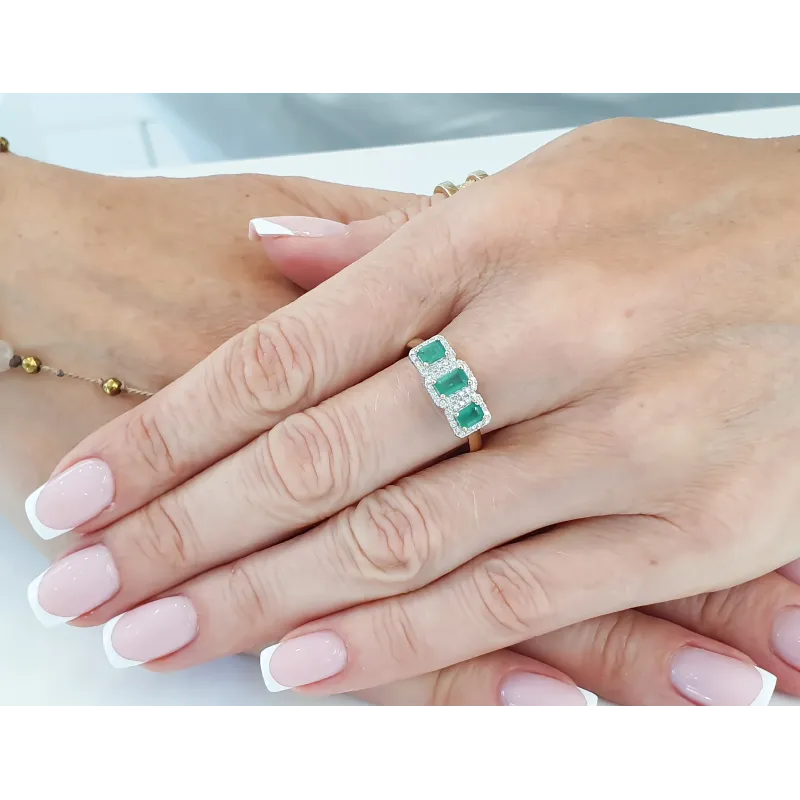 Złoty Pierścionek 585 Szmaragdy i Diamenty