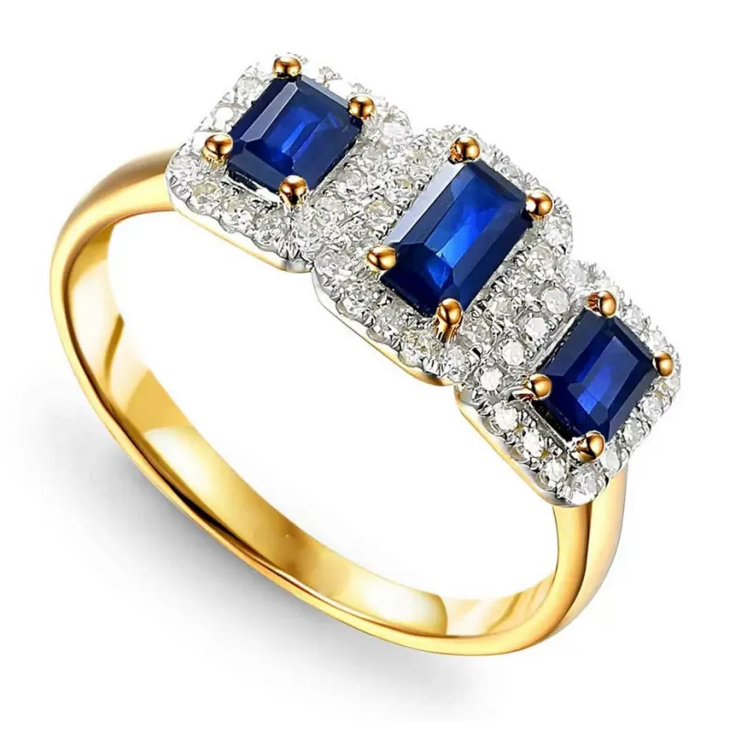 Złoty Pierścionek 585 Szafir i Diamenty