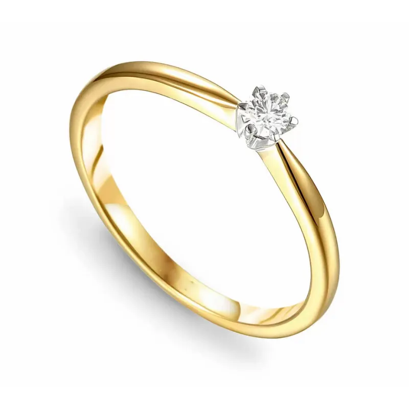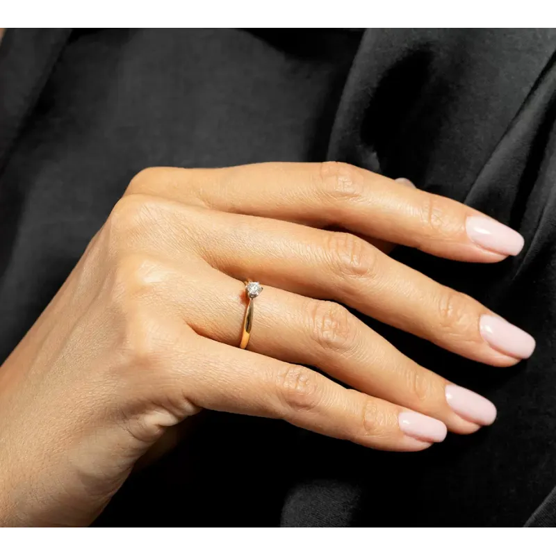 Złoty Pierścionek Zaręczynowy 585 Diament Naturalny 0.15ct