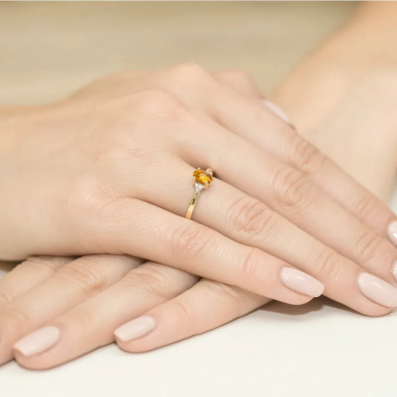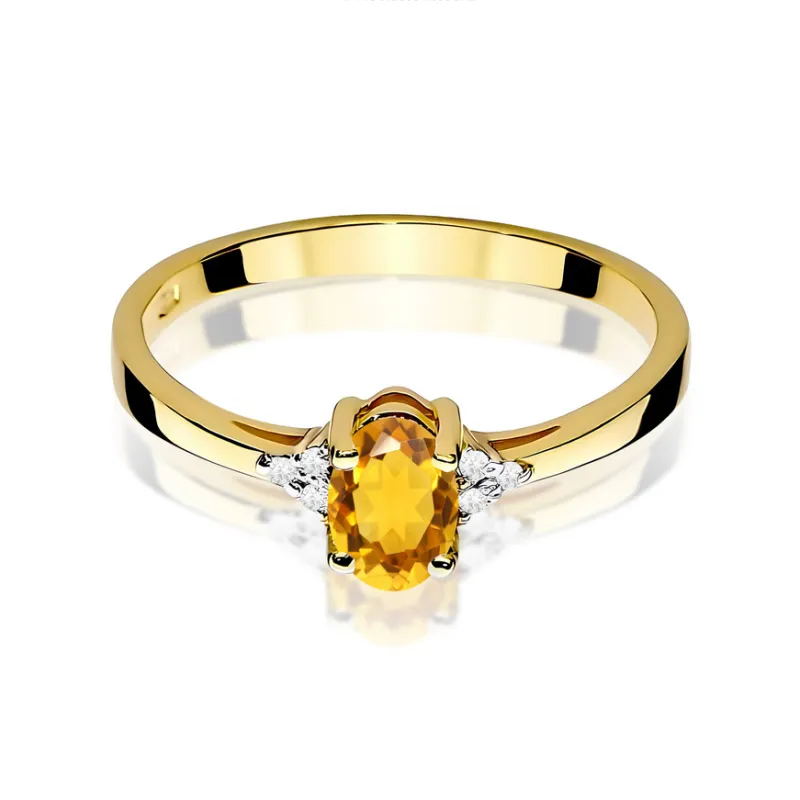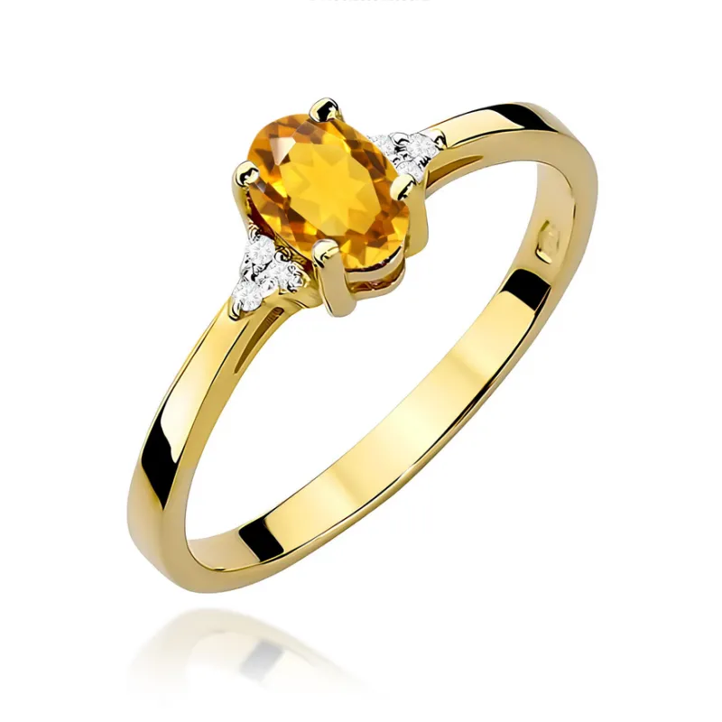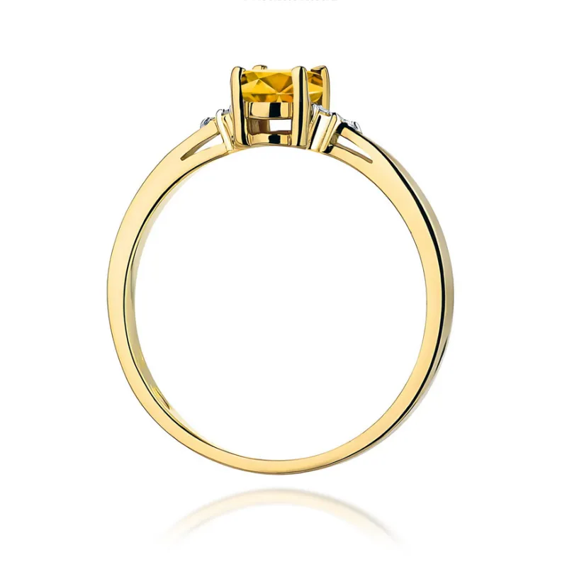 Złoty Pierścionek 585 Cytryn i Brylanty
