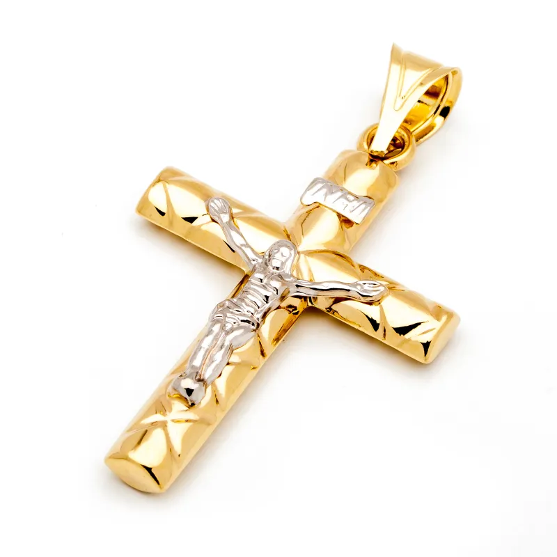 ZŁOTY KRZYŻYK DUŻY ŻÓŁTO BIAŁY 585