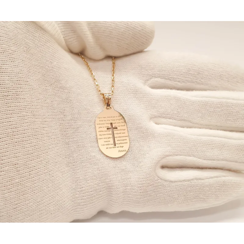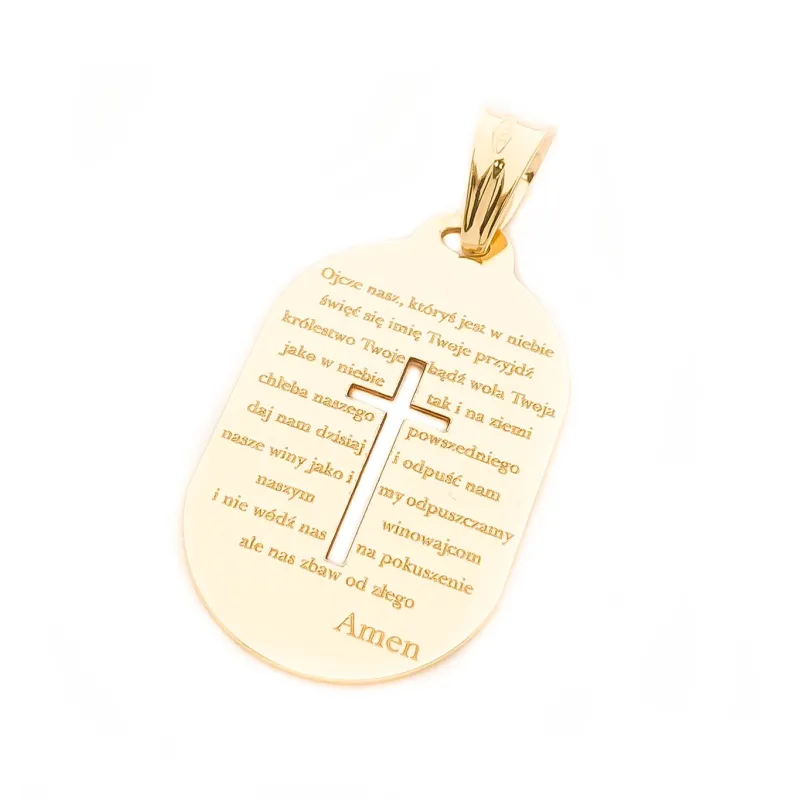 Złota 14K Zawieszka z Modlitwą i Krzyżykiem Grawer