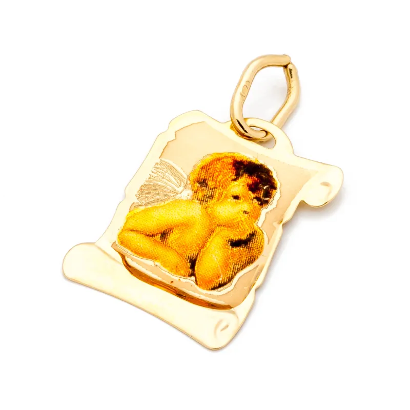 ZŁOTY MEDALIK ANIOŁEK NA PAPIRUSIE pr 585