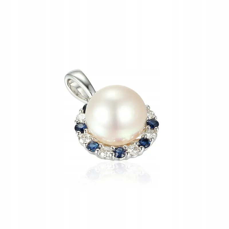 ZAWIESZKA PERŁA SZAFIR DIAMENT 585 BIAŁE ZŁOTO ( NA ZAMÓWIENIE )