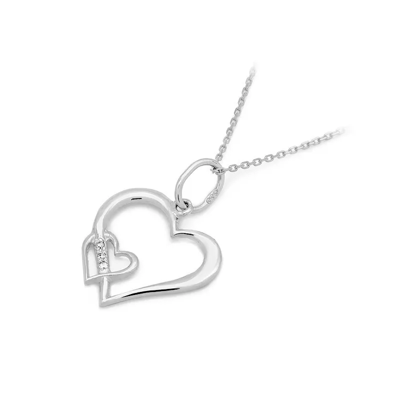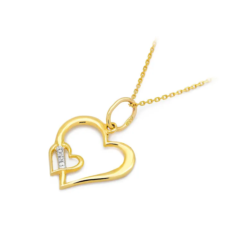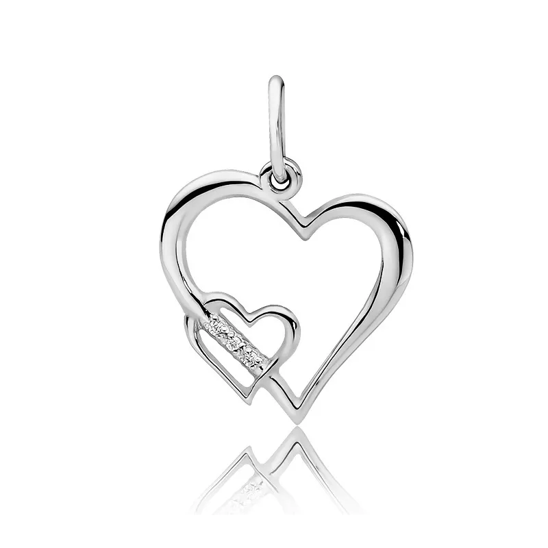 ZAWIESZKA DWA SERCA 585 DIAMENTY BIAŁE ZŁOTO ( na