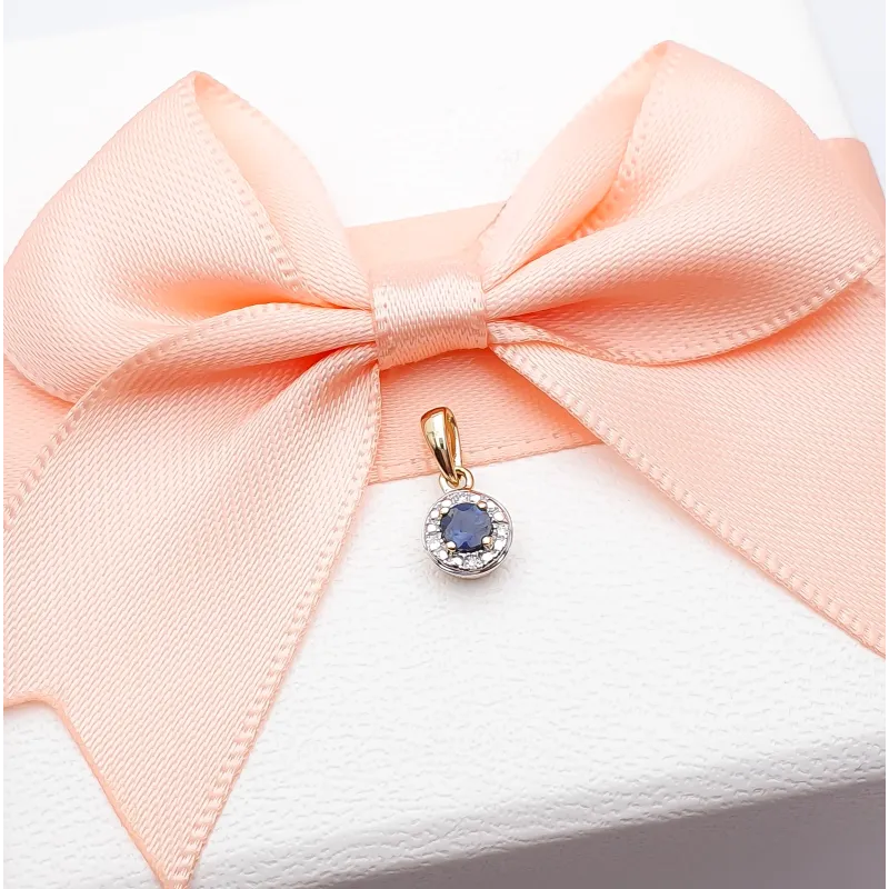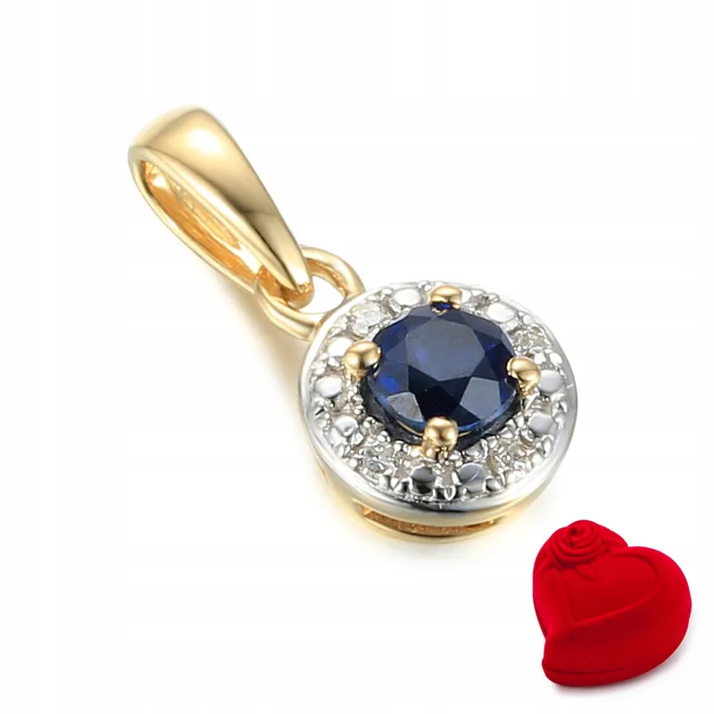 ZŁOTA ZAWIESZKA 585 SZAFIR I DIAMENTY NA PREZENT