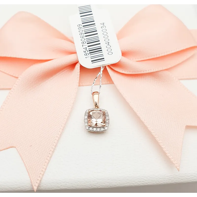 ZAWIESZKA MORGANIT DIAMENTY 585 RÓŻOWE ZŁOTO ( NA ZAMÓWIENIE )