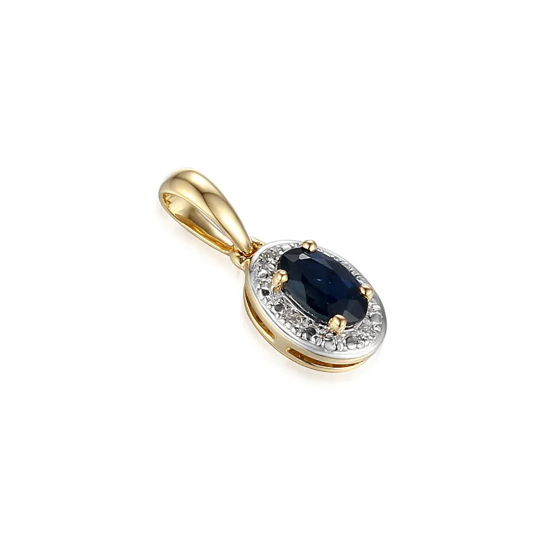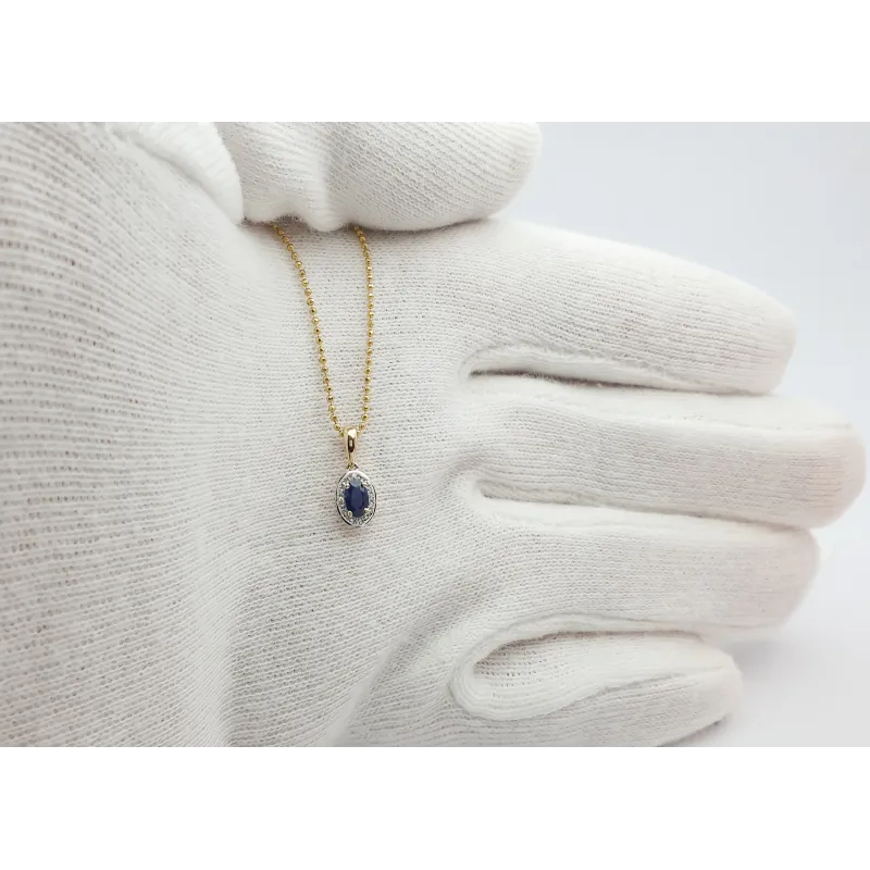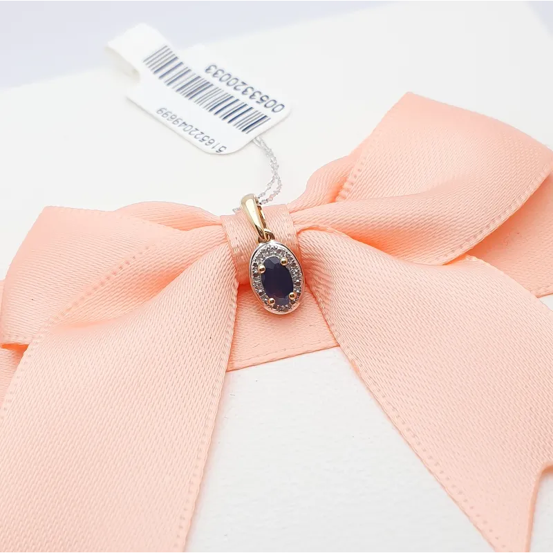 Złota 585 Zawieszka z Szafirem i Diamentami