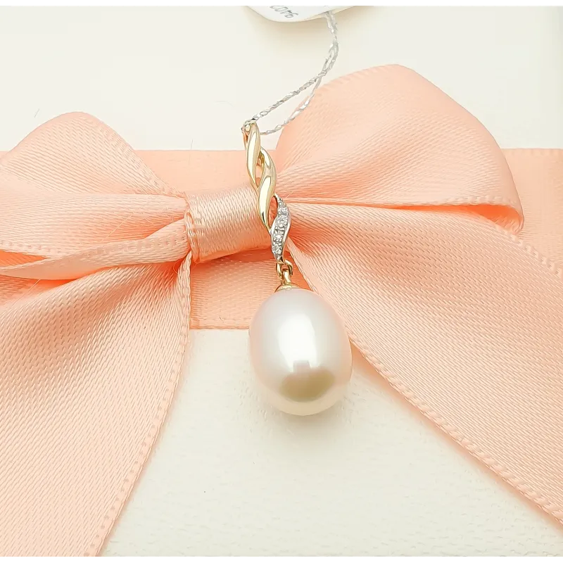 ZŁOTA ZAWIESZKA 585 PERŁA I DIAMENTY ŻÓŁTE ZŁOTO