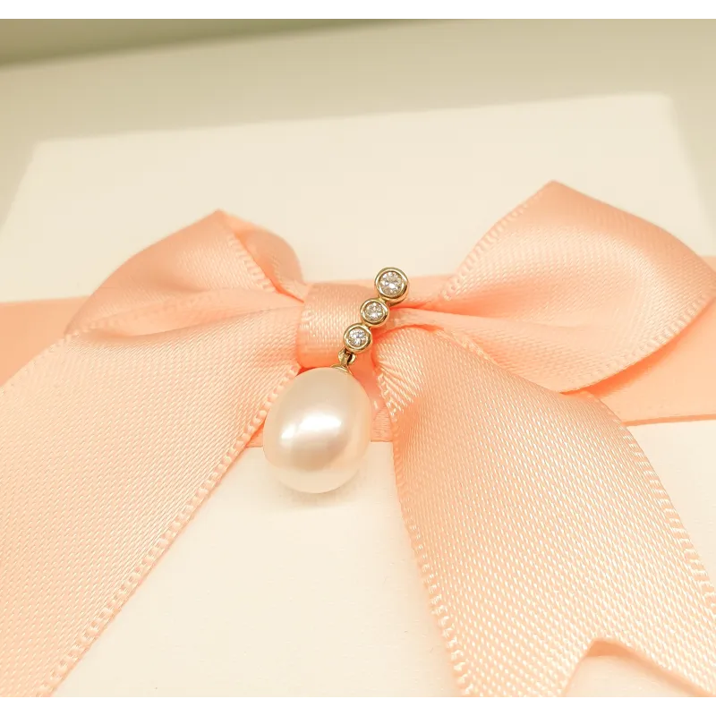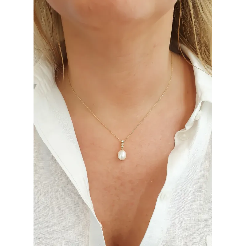 ZAWIESZKA 14K PERŁA DIAMENTY ŻÓŁTE ZŁOTO