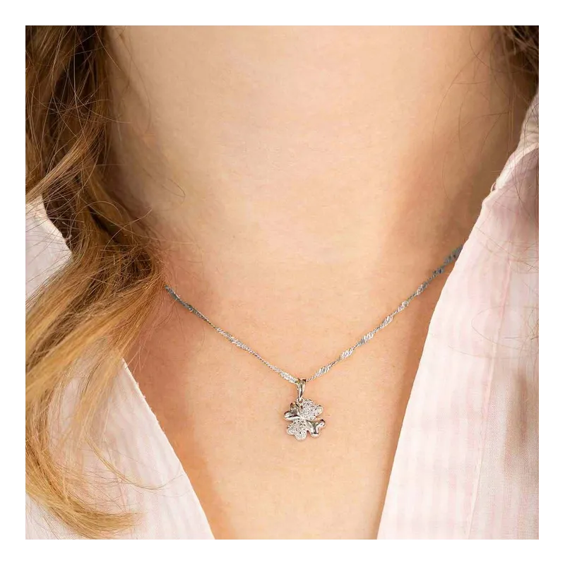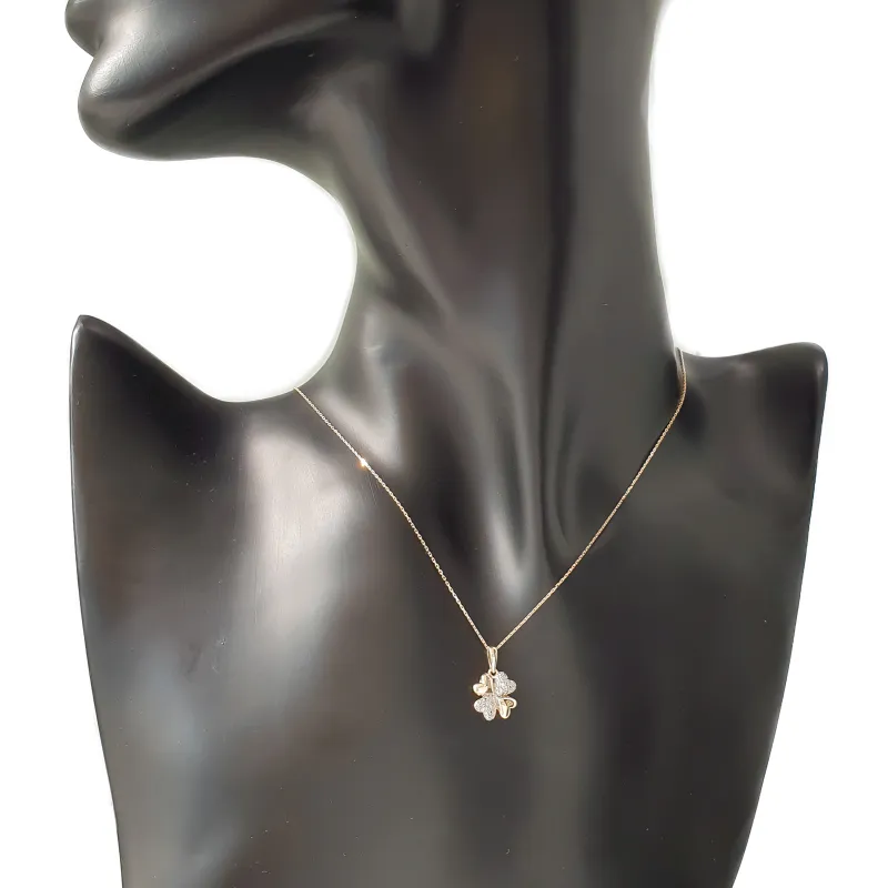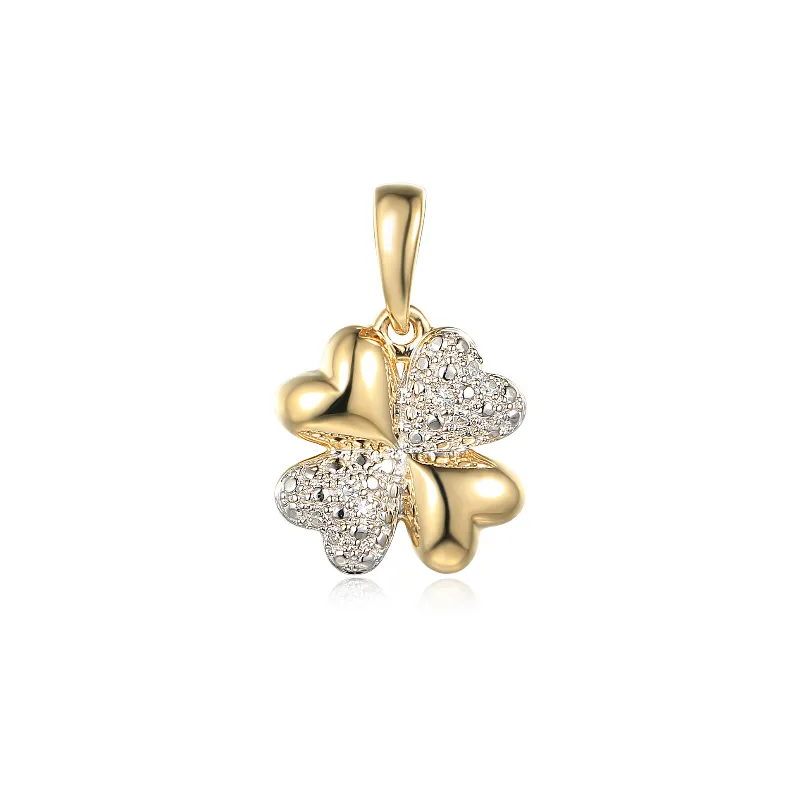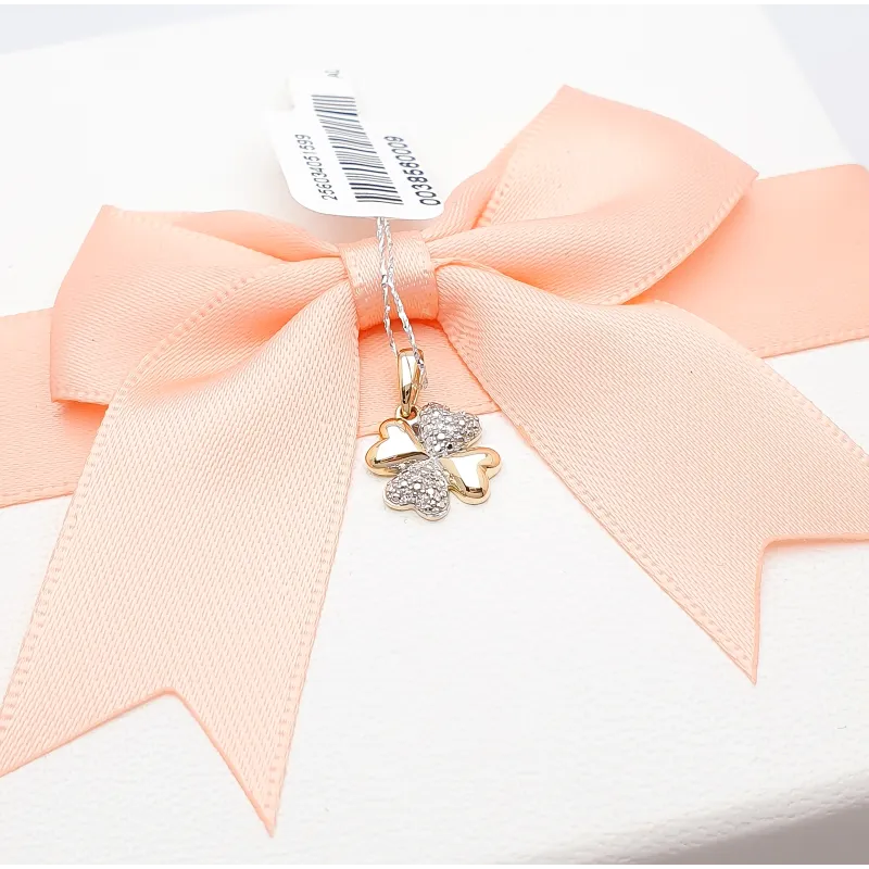 Złota 585 Zawieszka Koniczyna Diamenty Prezent