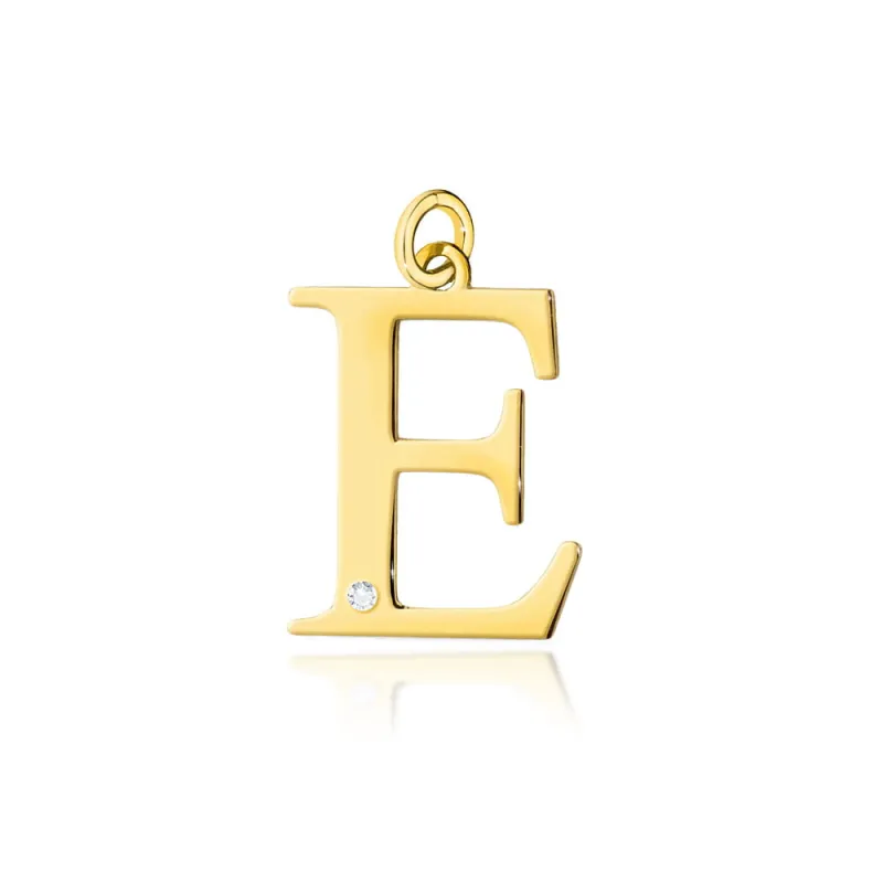Złota 585 Zawieszka Mała Litera E z Brylantem ( na