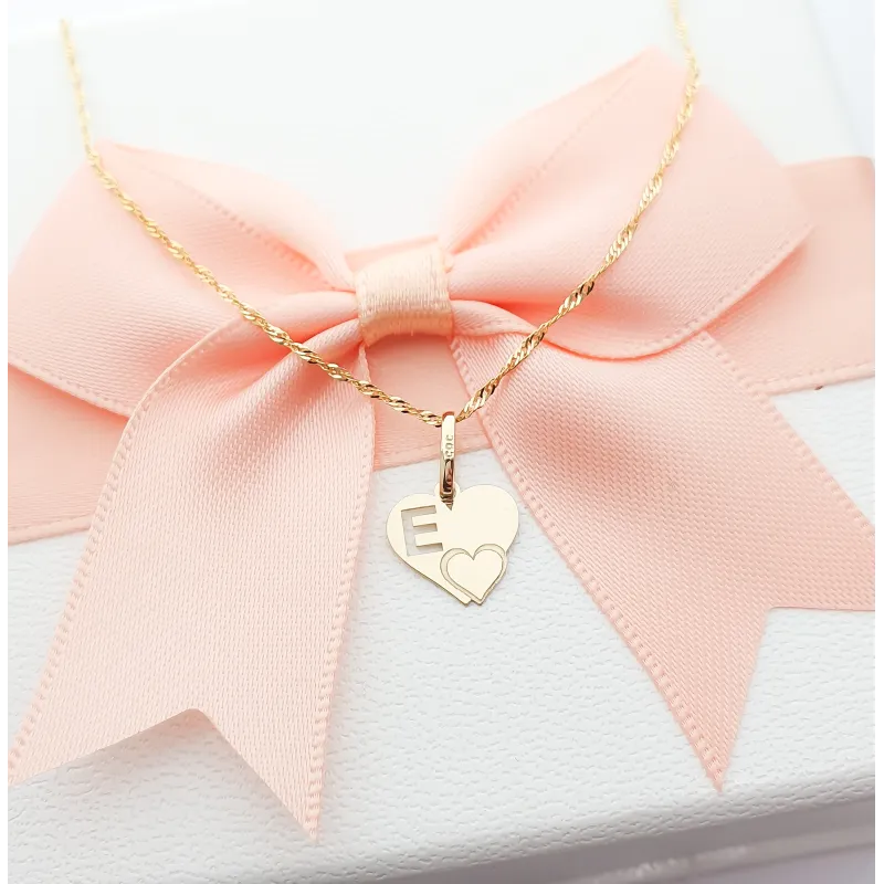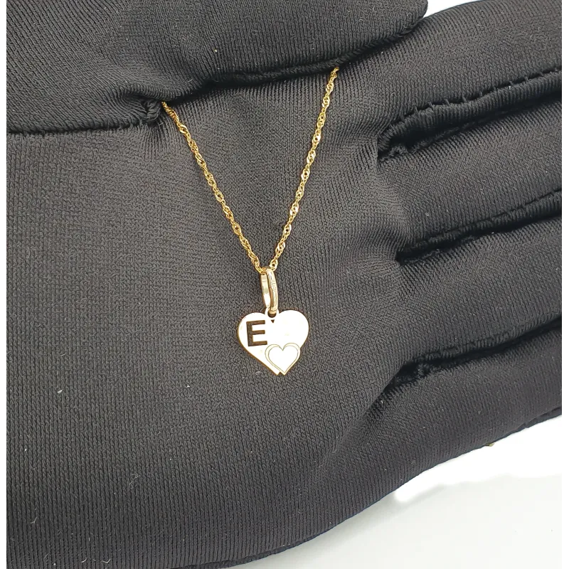 Złota Zawieszka Literka ''E'' w Sercu 585