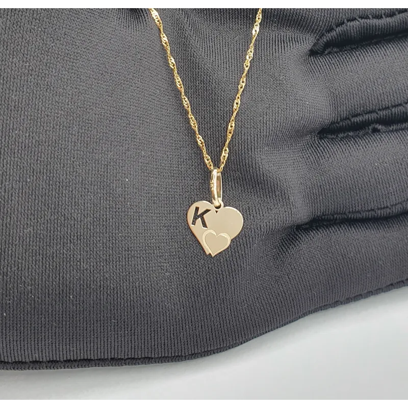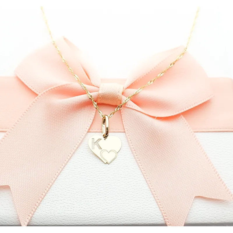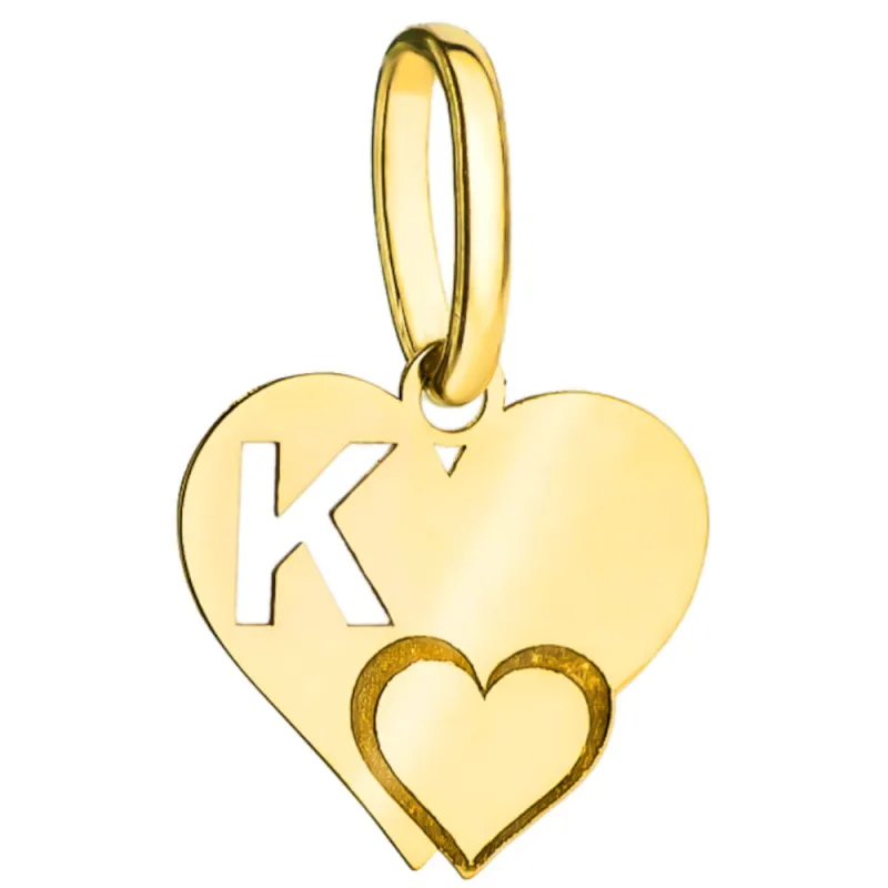 Złota Zawieszka Literka ''K'' w Sercu 585