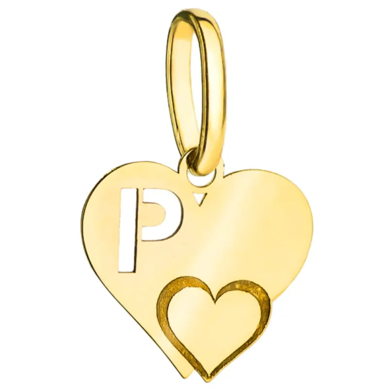 Złota Zawieszka Literka ''P'' w Sercu 585