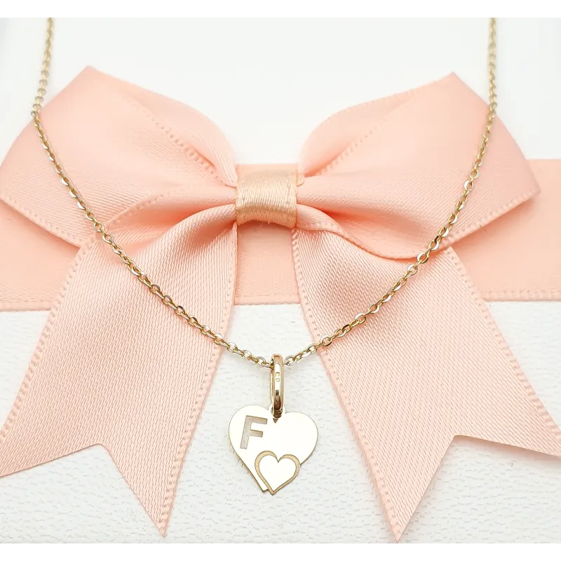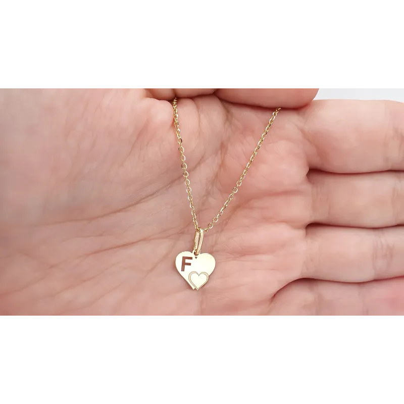 Złota Zawieszka Literka ''F'' w Sercu 585