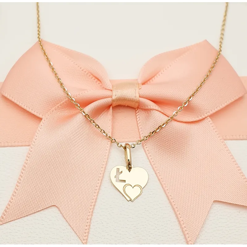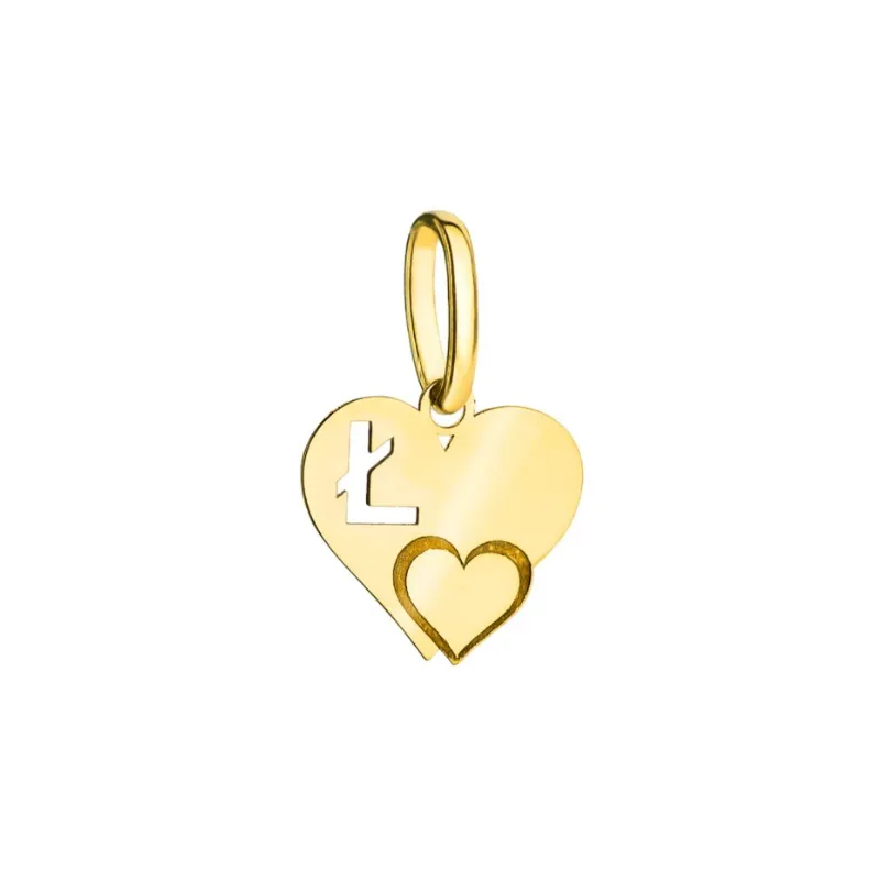 Złota Zawieszka Literka ''Ł'' w Sercu 585