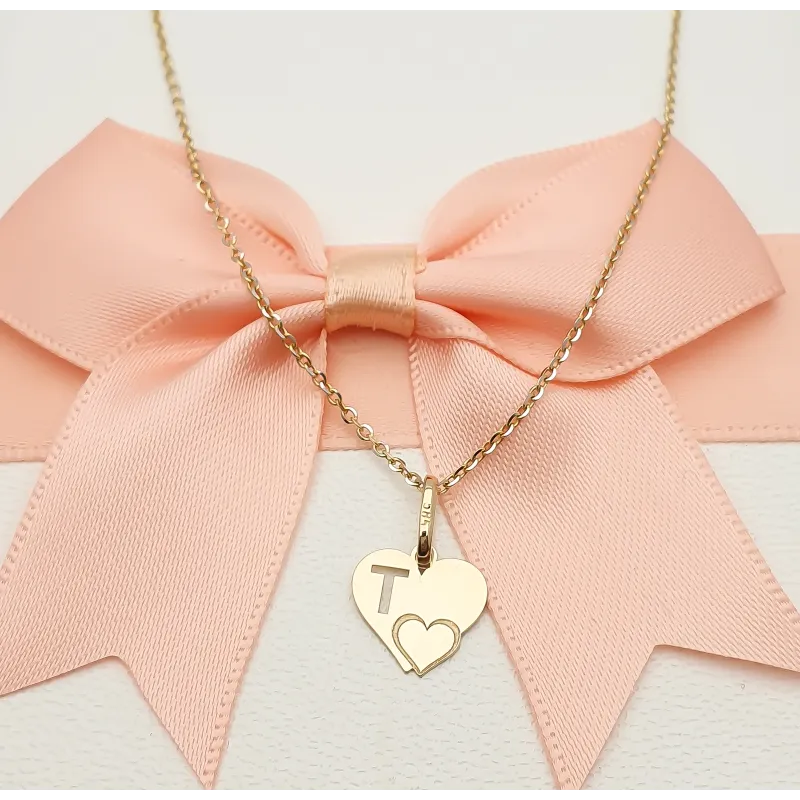 Złota Zawieszka Literka ''T'' w Sercu 585