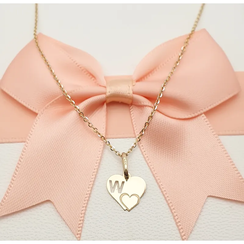 Złota Zawieszka Literka ''W'' w Sercu 585