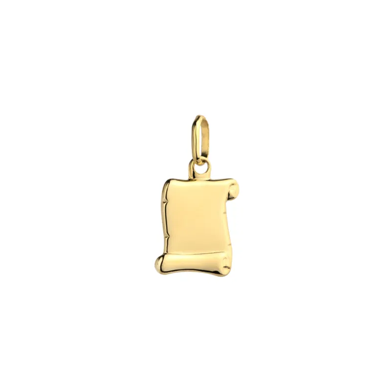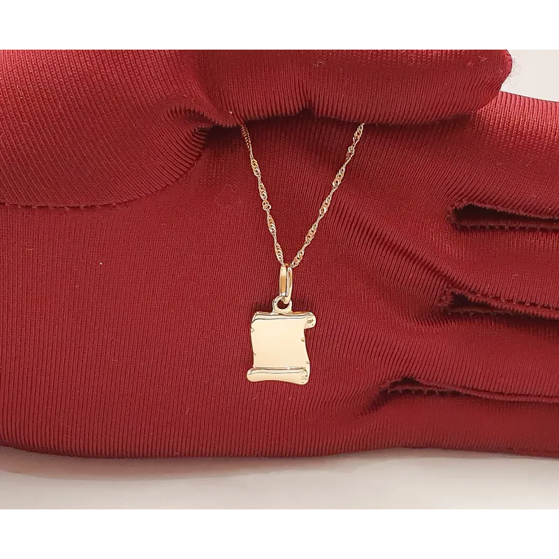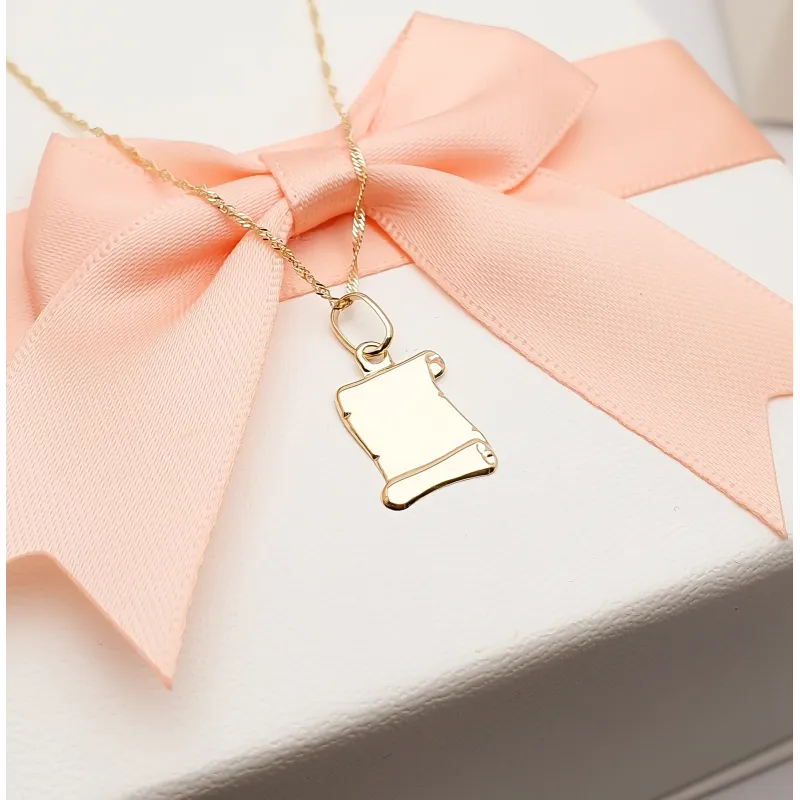 Złota 585 Zawieszka Mały Papirus Grawer na Prezent
