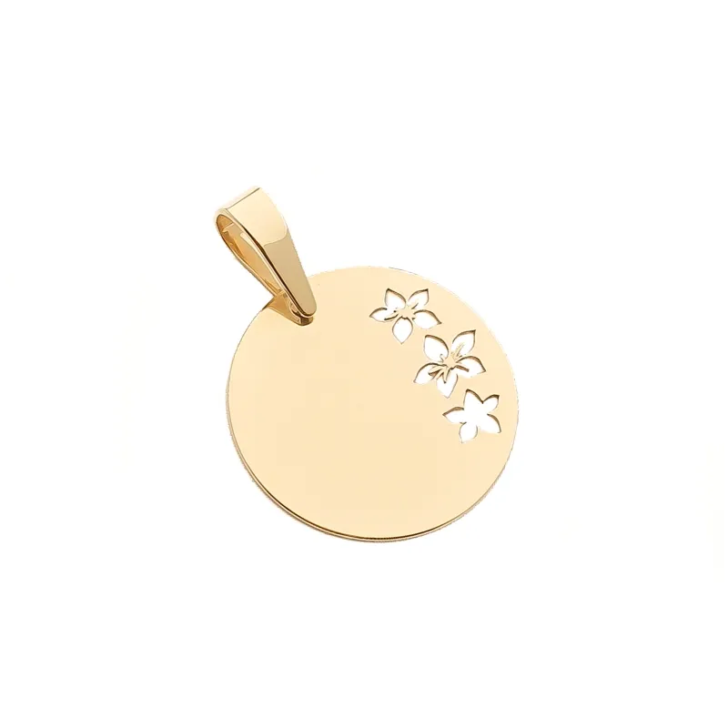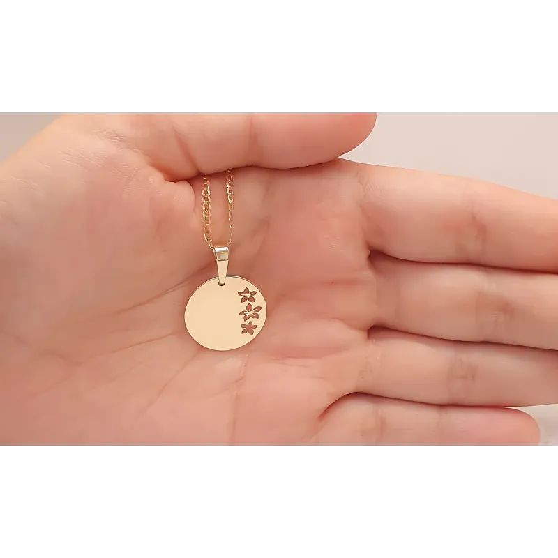Złota 585 Zawieszka Kwiaty Blaszka Grawer Prezent