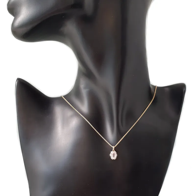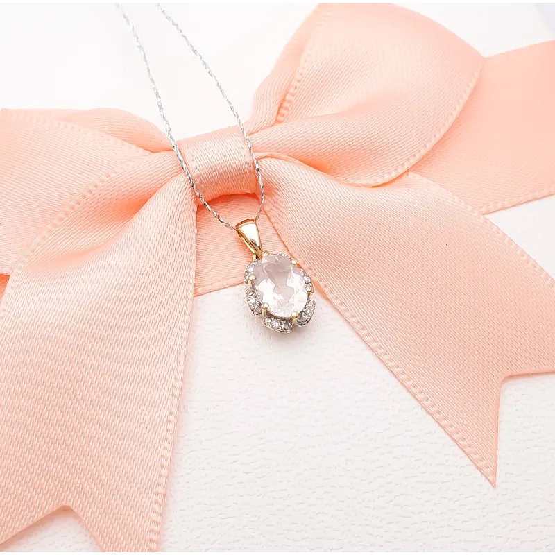 Złota Zawieszka Kwarc Różowy Diamenty Próba 585