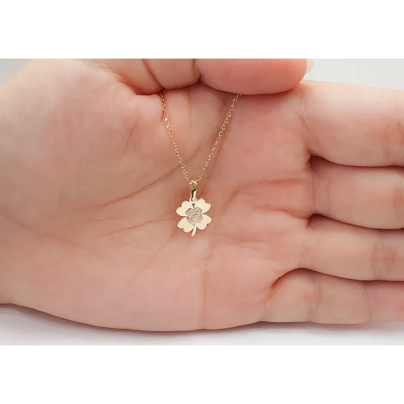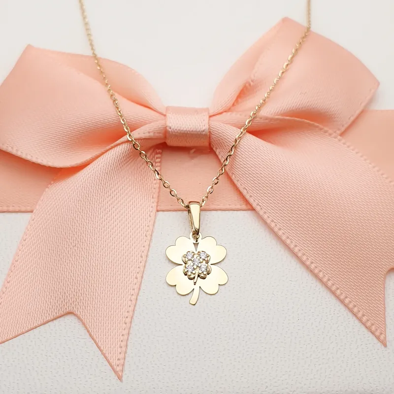Złota 585 Zawieszka Koniczynka Cyrkonie na Prezent