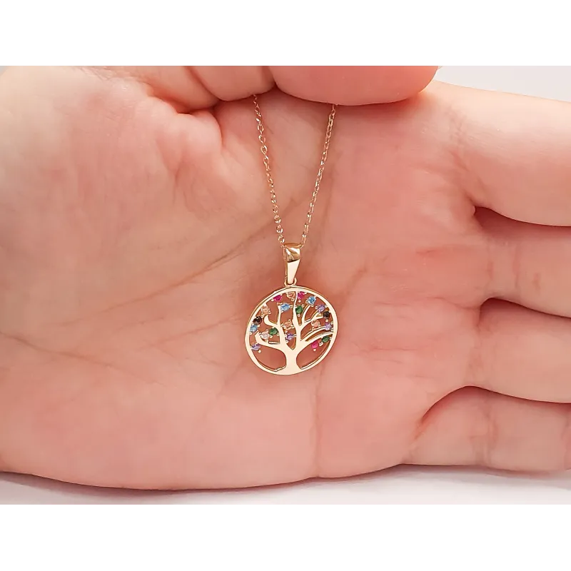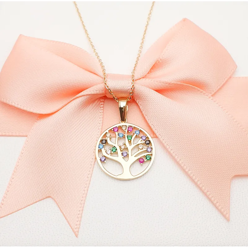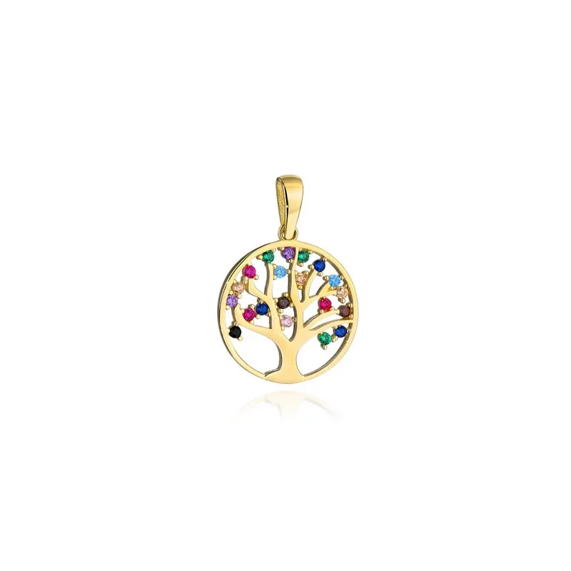 Złota Zawieszka Drzewko Szczęścia Kolorowe Cyrkonie