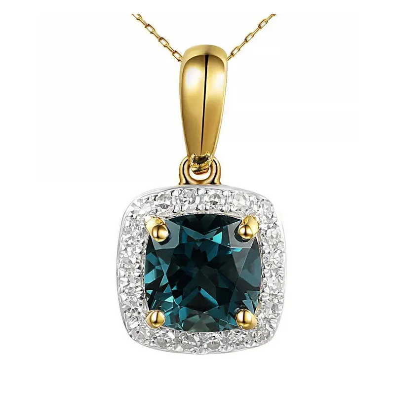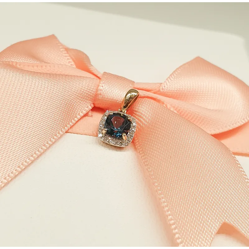 ZŁOTA 585 ZAWIESZKA Z LONDON BLUE TOPAZEM I DIAMENTAMI