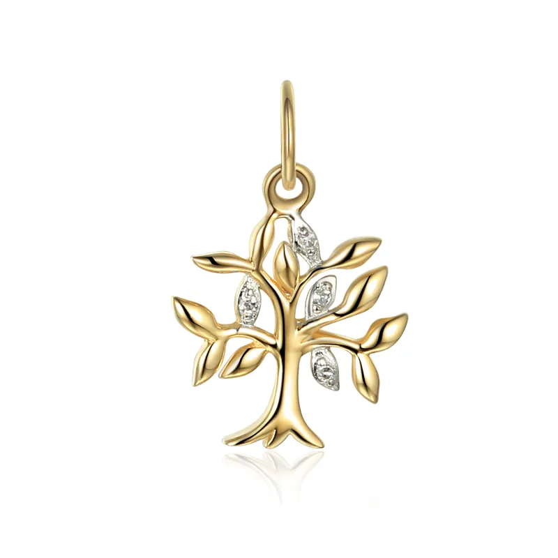 Złota 585 Zawieszka Drzewko Szczęścia z Diamentami