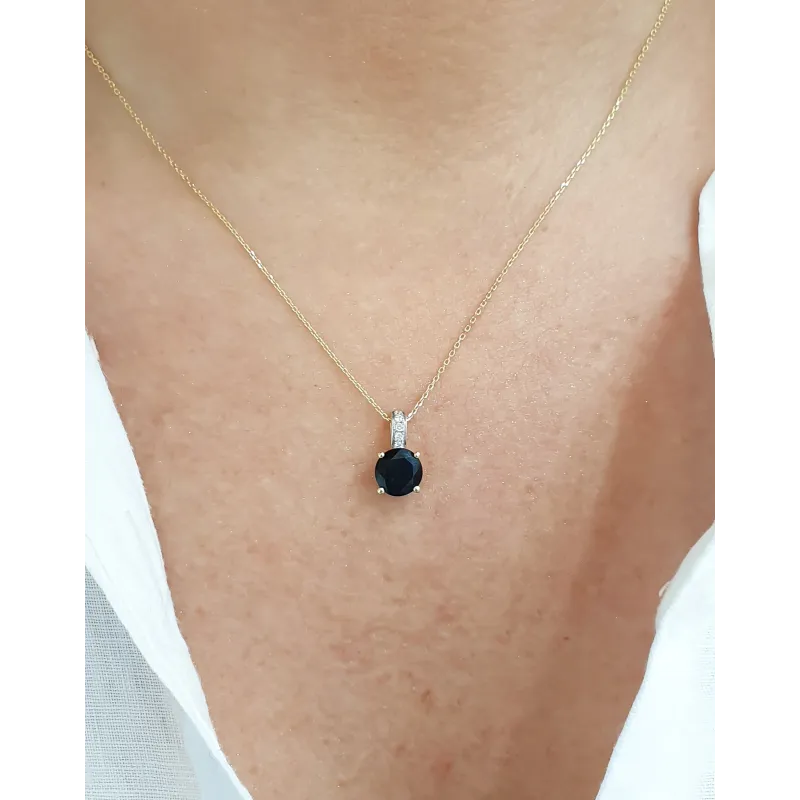 Złota Zawieszka z Czarnym Agatem i Diamentami Idealna na Prezent