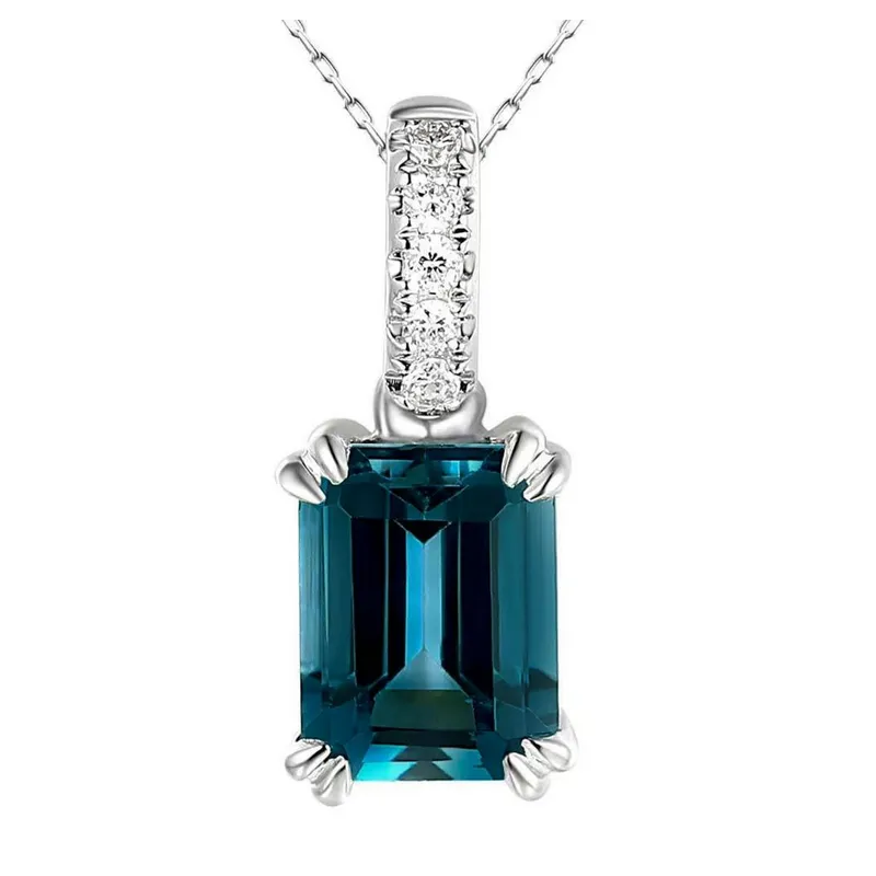 ZAWIESZKA BIAŁE ZŁOTO TOPAZ LONDON BLUE I DIAMENTY
