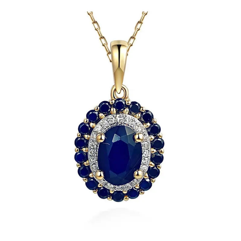 Złota Zawieszka Szafir Diamenty pr 585 na Prezent ( NA ZAMÓWIENIE )