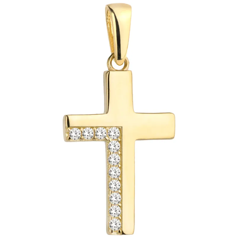 Złoty Krzyżyk z Cyrkoniami Elegancki Prezent 585