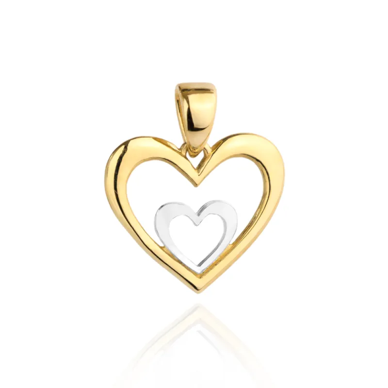 Złota Zawieszka 585 Serce w Sercu Białe Złoto na Prezent