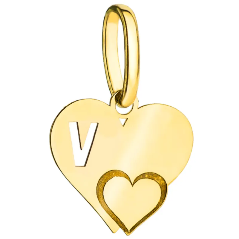 Złota Zawieszka Literka ''V'' w Sercu 585
